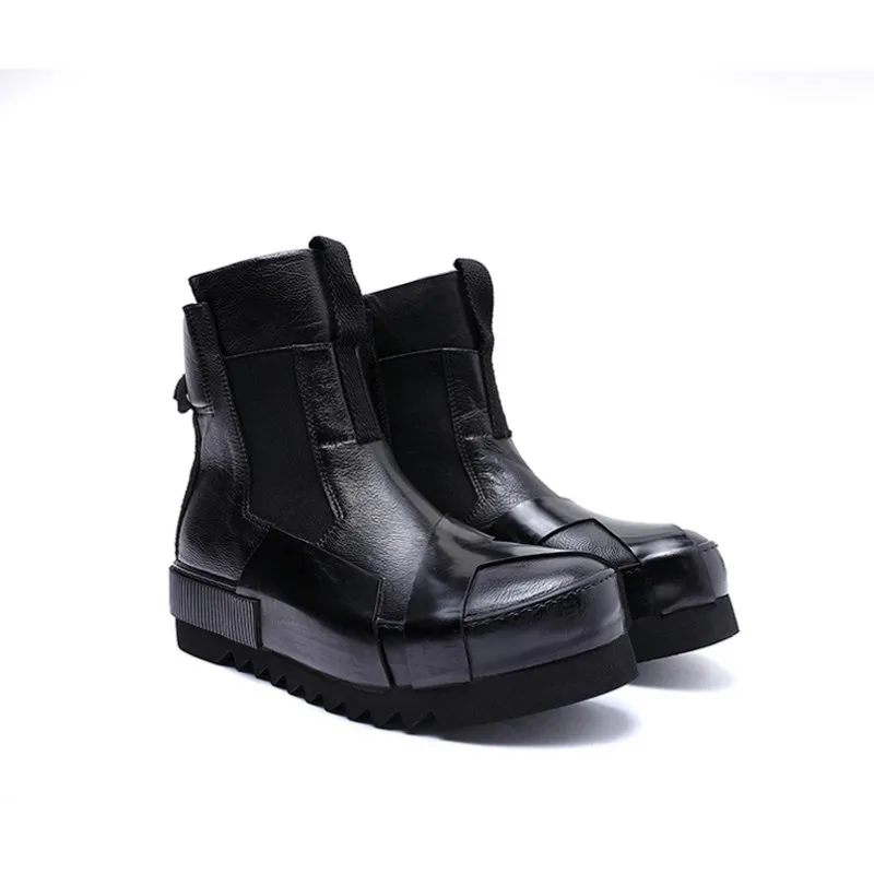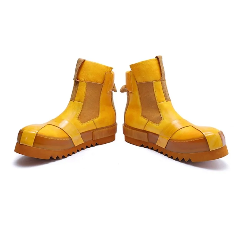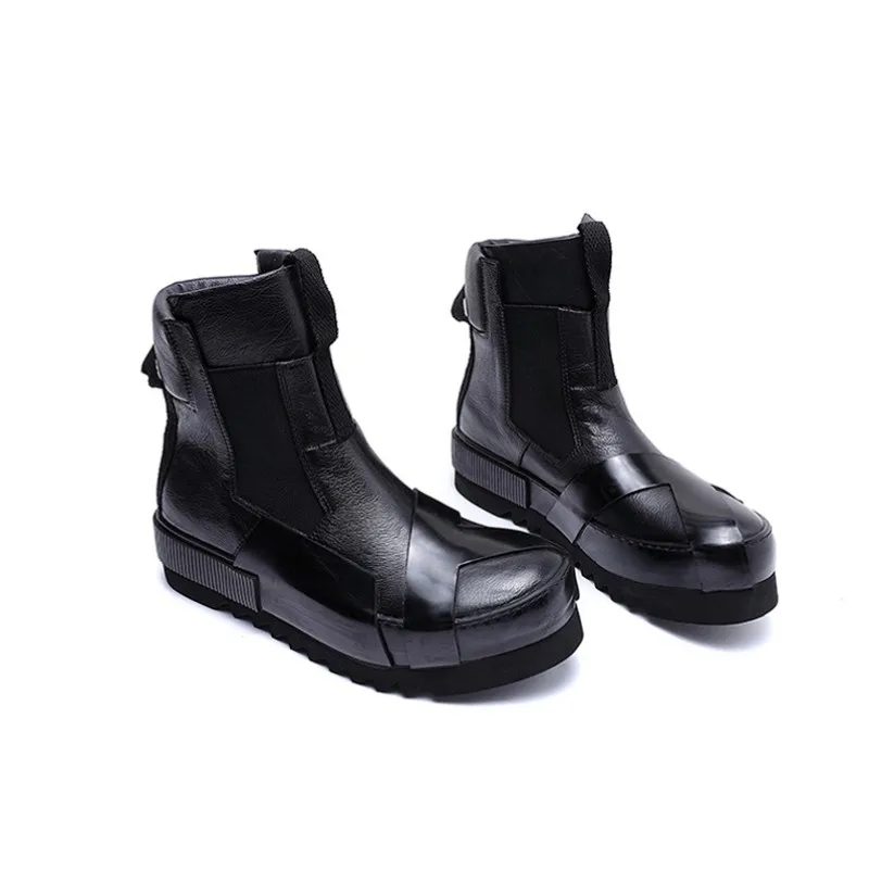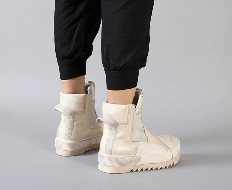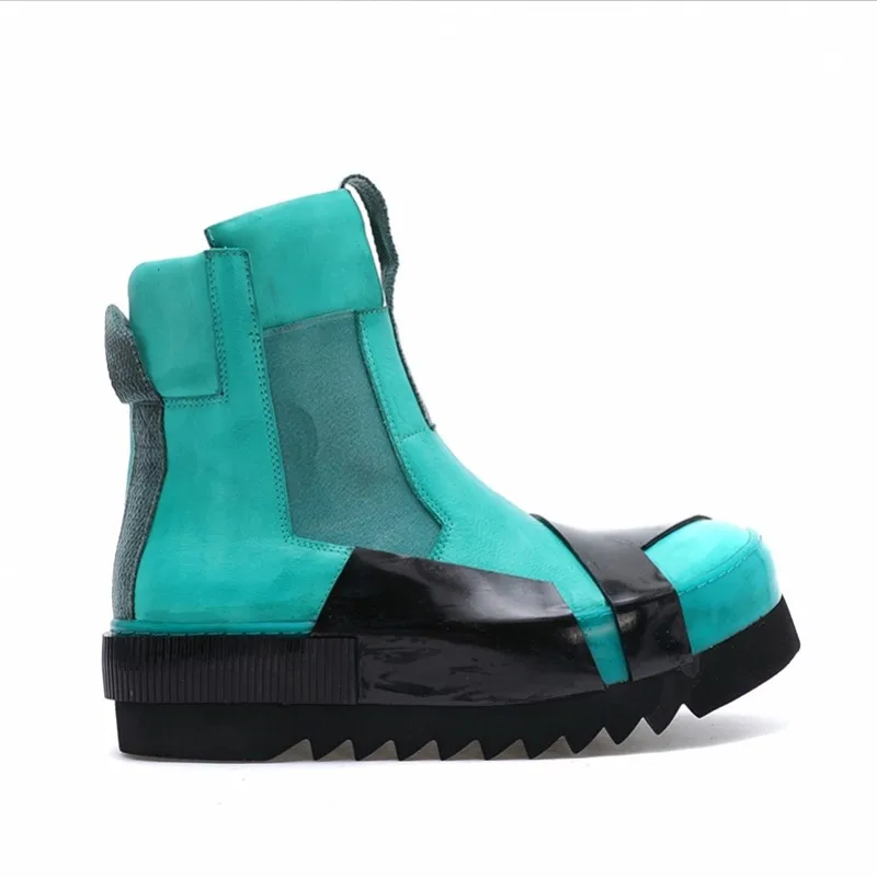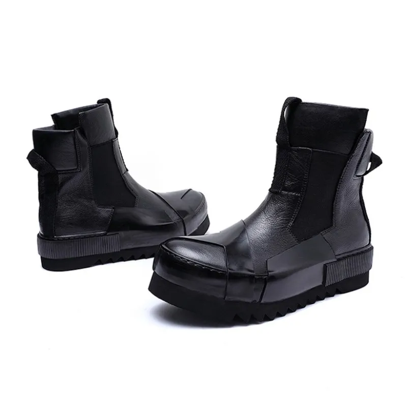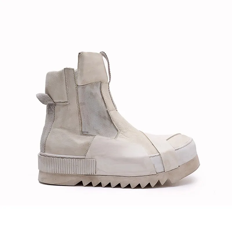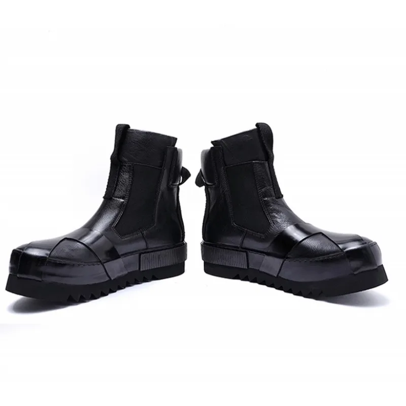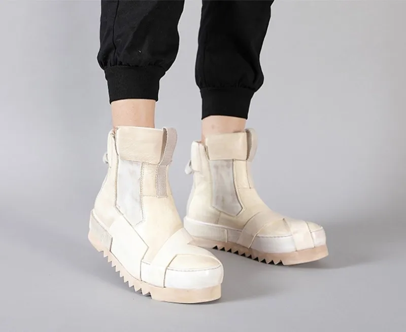 Designer Punk Boots Men Luxury Cowhide Genuine Leather Fashion High Top Sneakers High Quality Platform Shoes Size 45