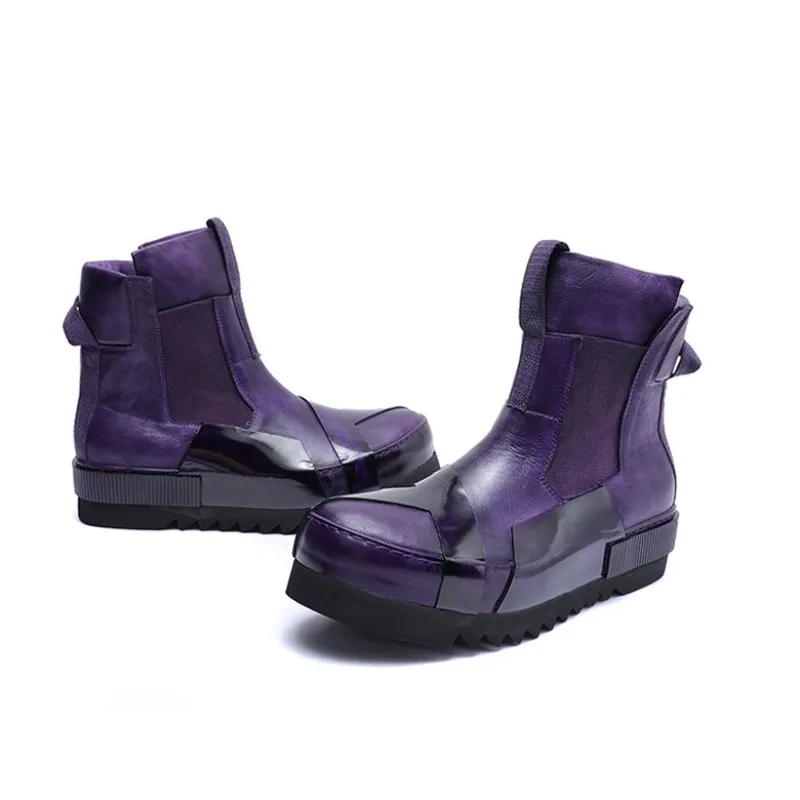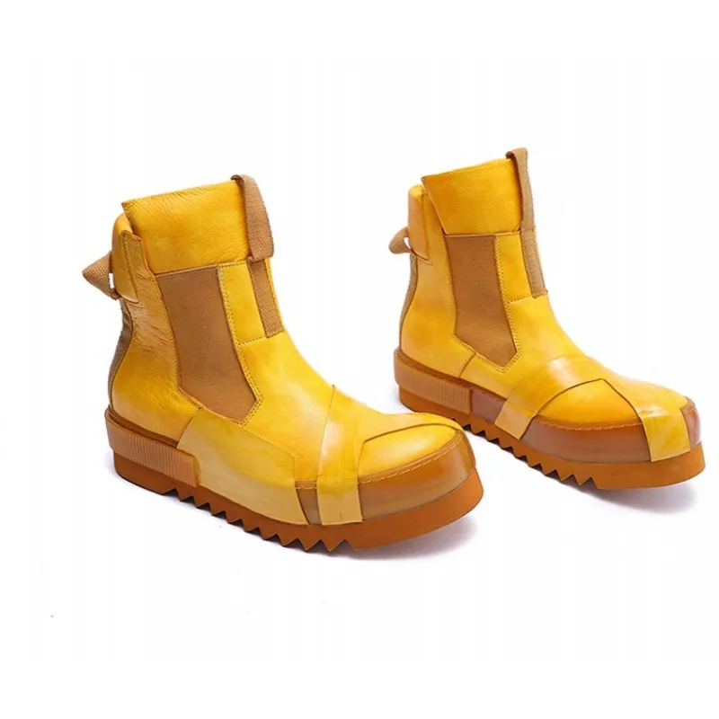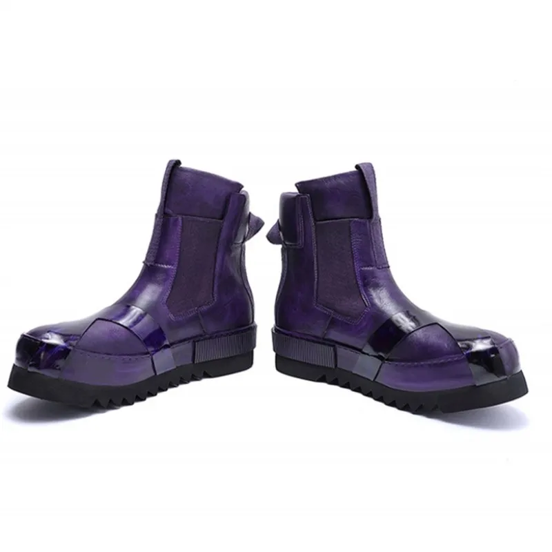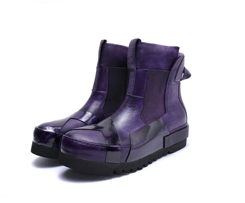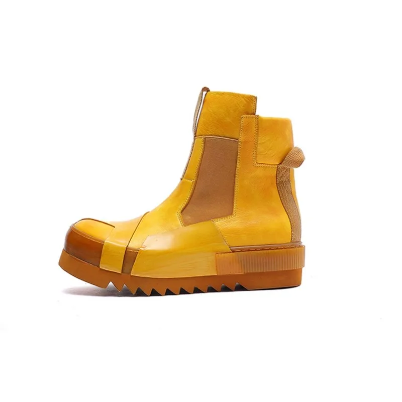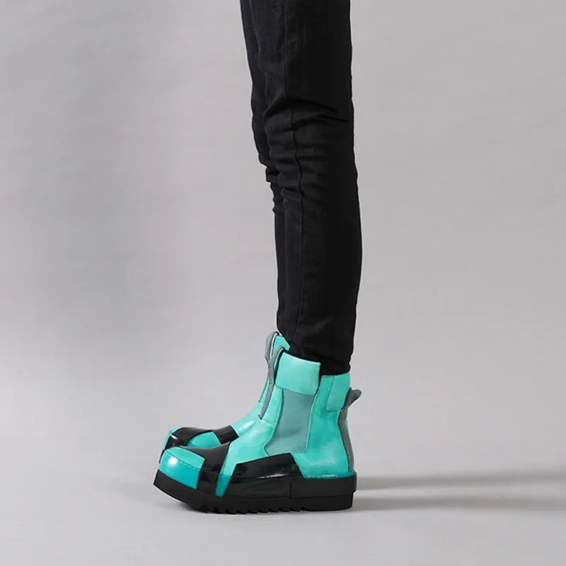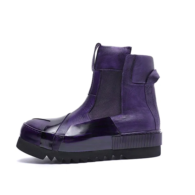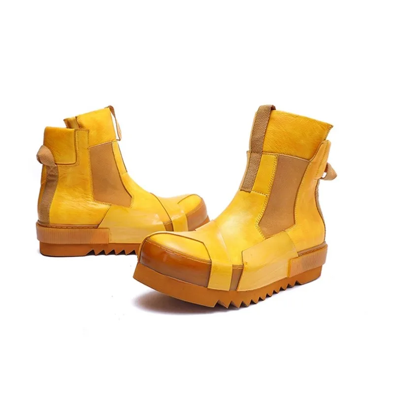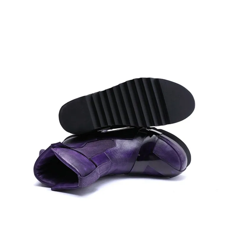Designer Punk Boots Men Luxury Cowhide Genuine Leather Fashion High Top Sneakers High Quality Platform Shoes Size 45