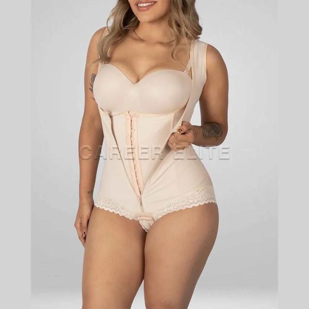 Fajas Double Compression Control Colombianans Full Body Shaper with Buckle Zipper Triangular Sheath Invisible Under Garment