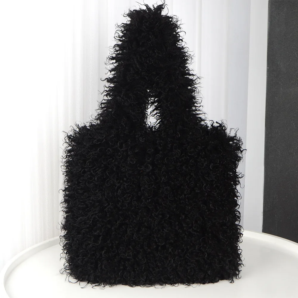 Women Tote Bags Faux Shearling Handbags Fur Casual Tote Solid Cell Phone Pocket Magnetic Buckle Elegant Soft 2025 Spring Autumn